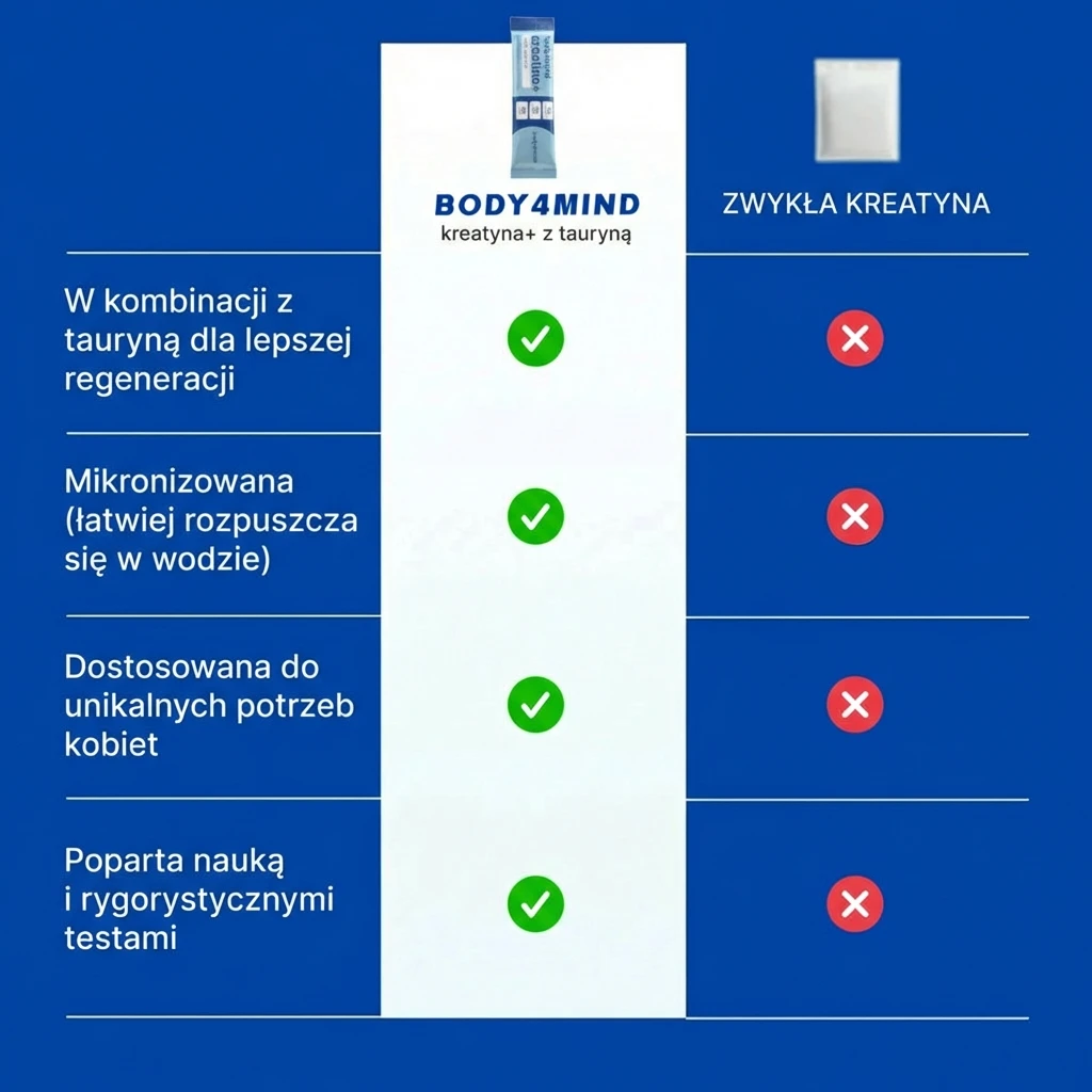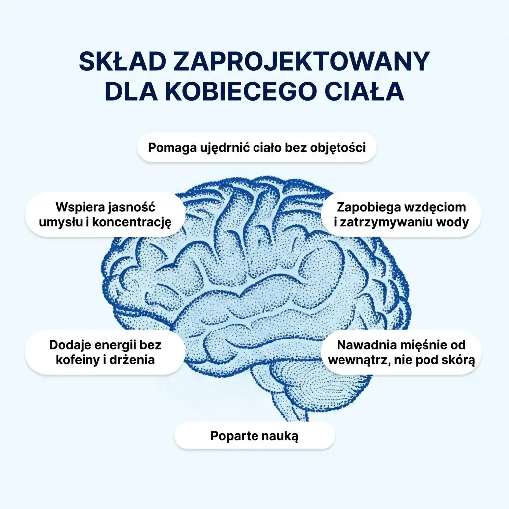 Żadnych „proszków” dla kulturystów. Ta formuła została zaprojektowana specjalnie dla kobiecej fizjologii – dla energii i ujędrnienia, nie dla objętości.